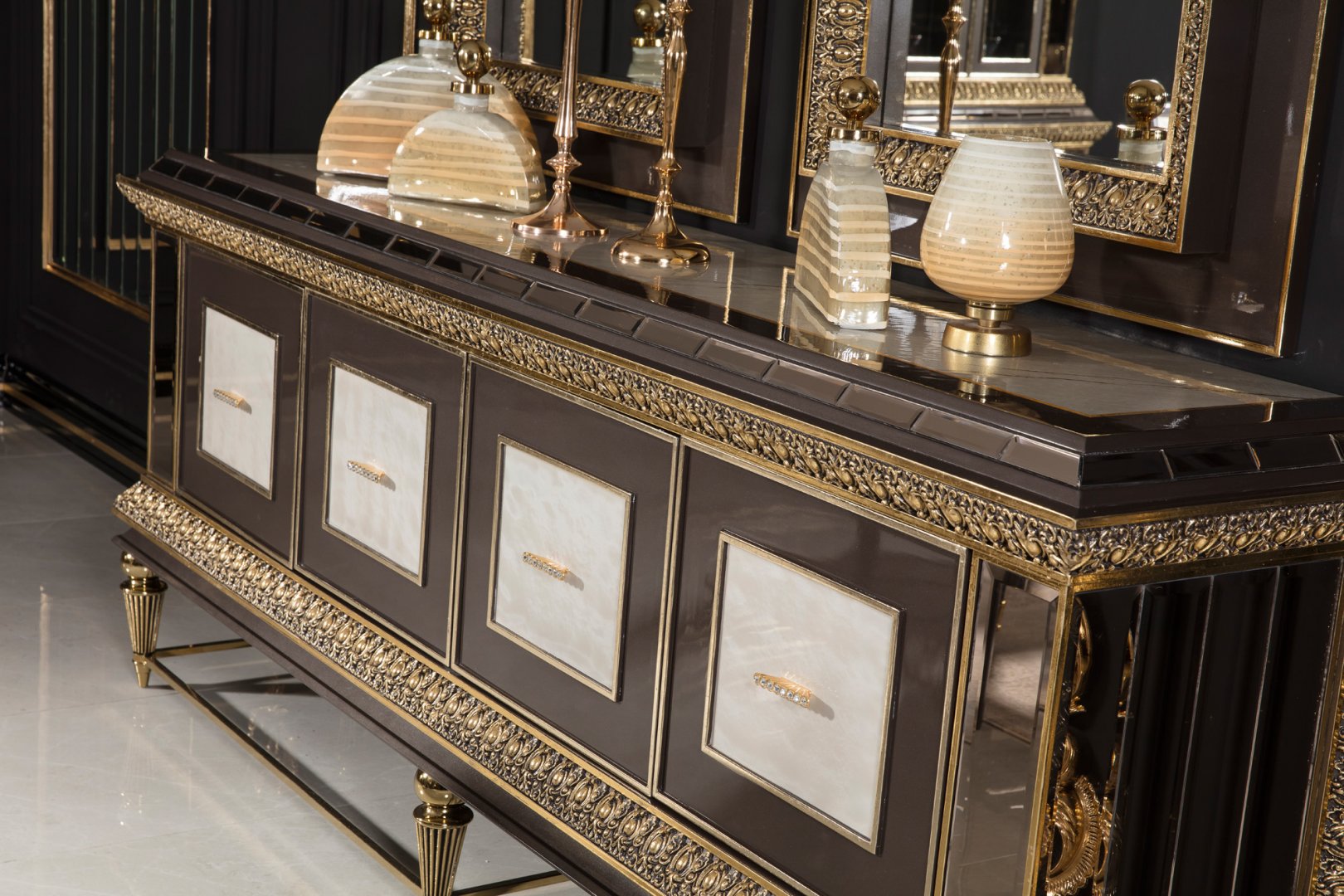 Yemek odası takımı denildiğinde akla gelen etkileyici, ergonomik, göz alıcı ve kullanışlı tasarımlar. Yaşam alanlarınıza luxury ve yepyeni bir görünüm kazandıracak yemek odası konsolları, eşyalarınızı yerleştirebileceğiniz bölme özellikleri ile de fonksiyonel bir yapıya sahip. Yemek odalarının diğer bir parçası olan şık vitrinler de konsollar gibi mekâna değer katıyor. Kişiye göre değişen birçok seçenek ile üretilebilen Şeref Concept konsol ve vitrin modelleri yemek masanızın kusursuz bir şekilde tamamlayıcılığını yapıyor. Şeref Concept, yeni sezon koleksiyonu içinde yer alan yemek odası takımları ile birbirinden farklı tasarımlarını beğeninize sunuyor. Uzun ömürlü kullanım imkânı ve zarif seçimler için en doğru adres, Şeref Concept.