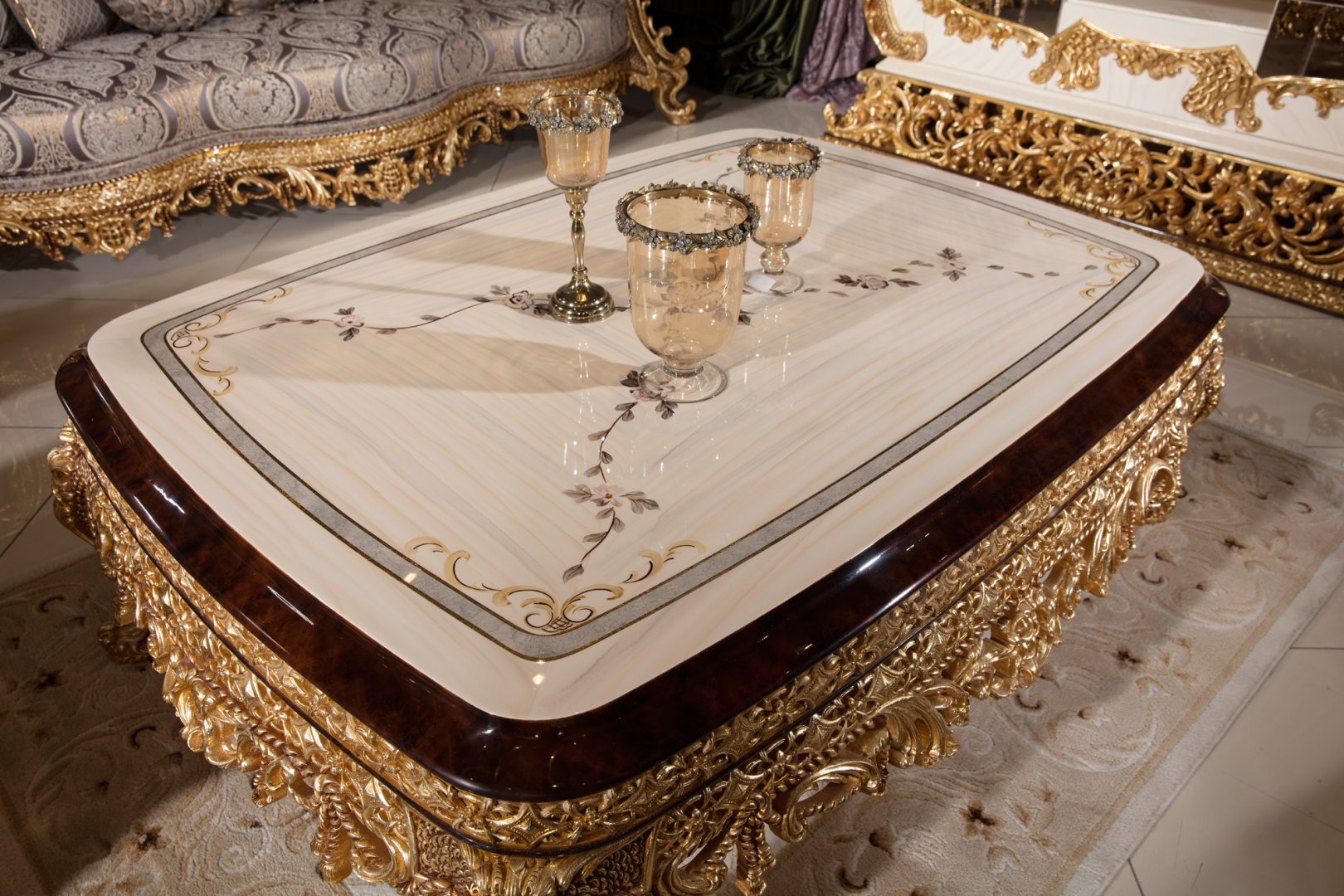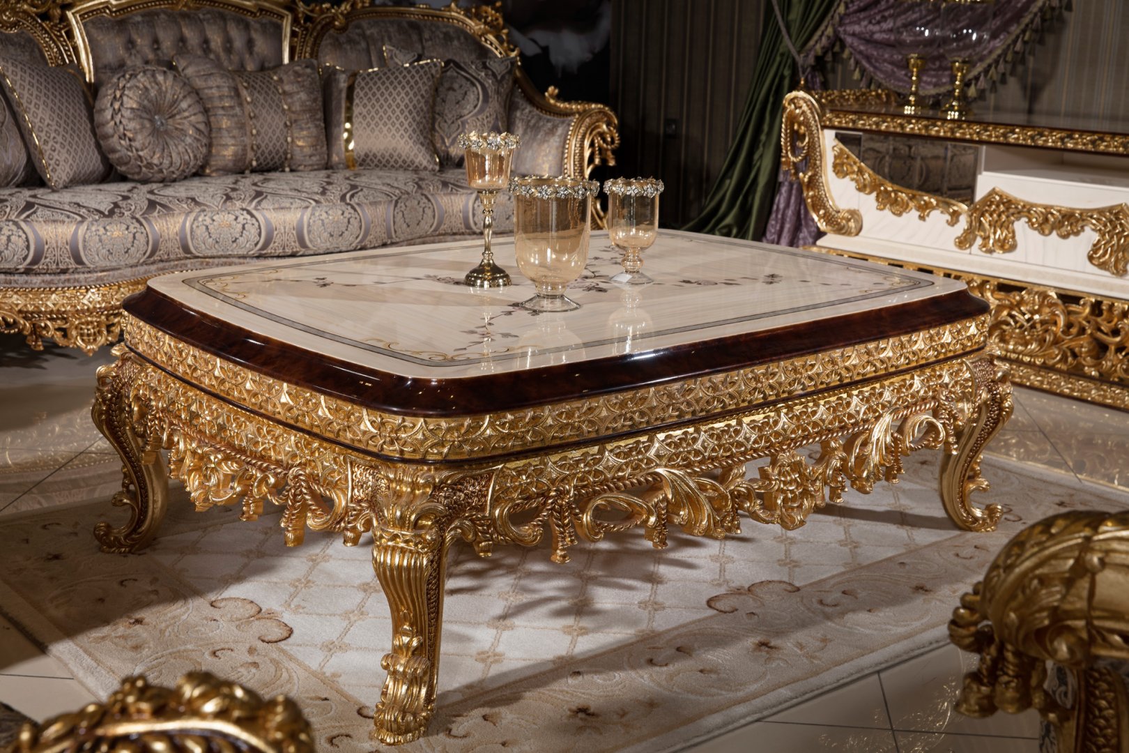 Hünkar Klasik Altın ve Kahverengi Sehpa 1
