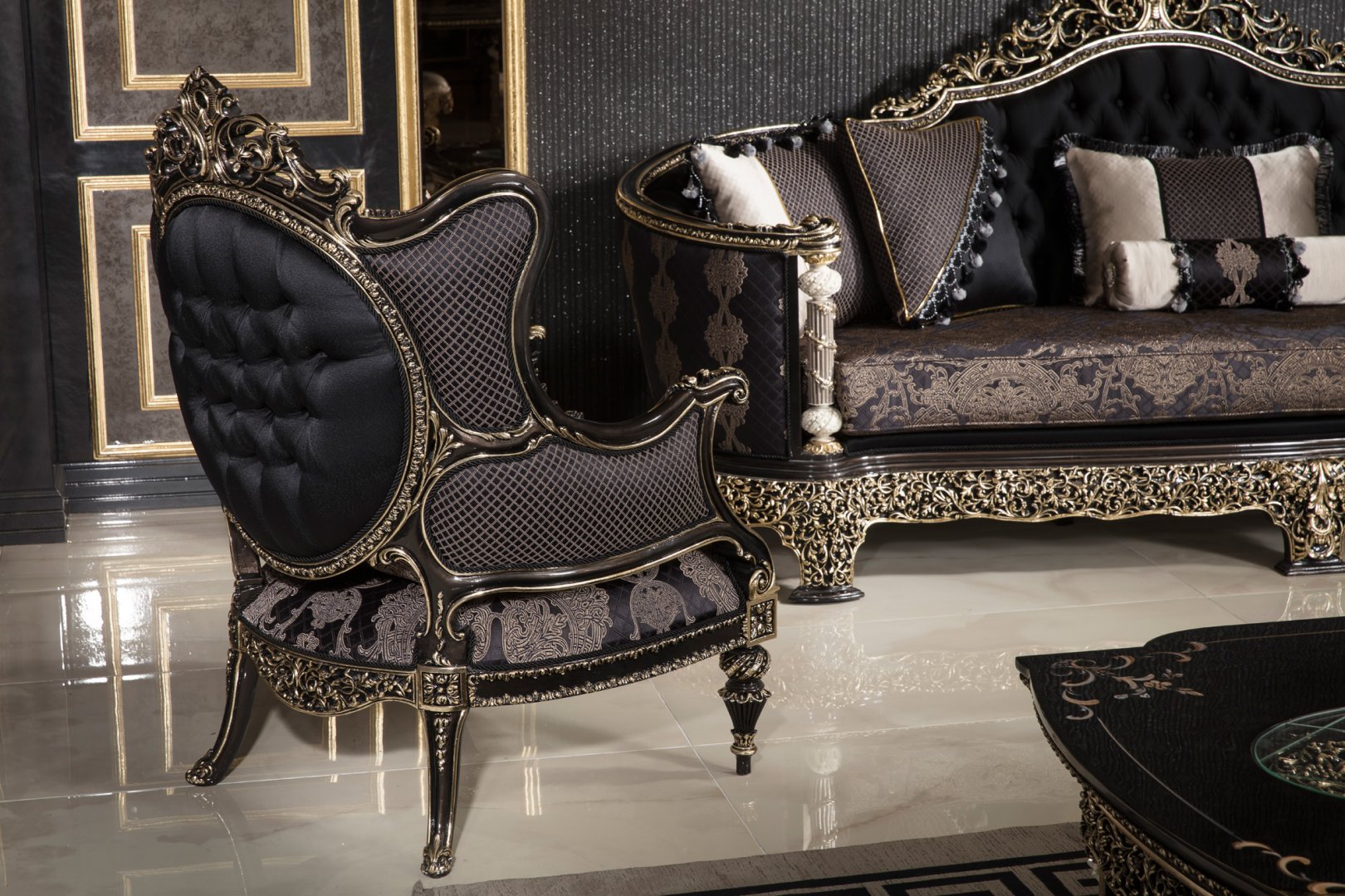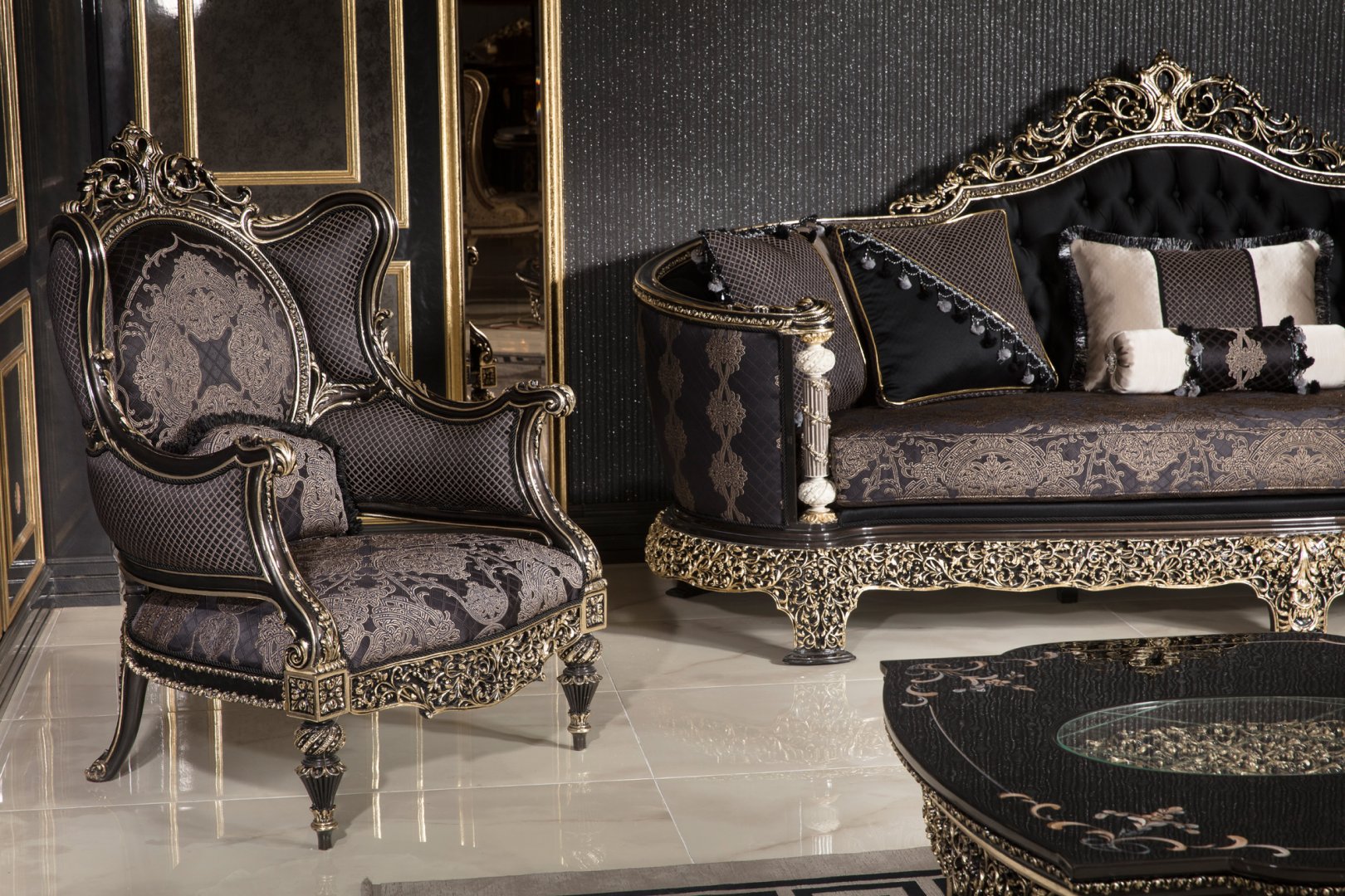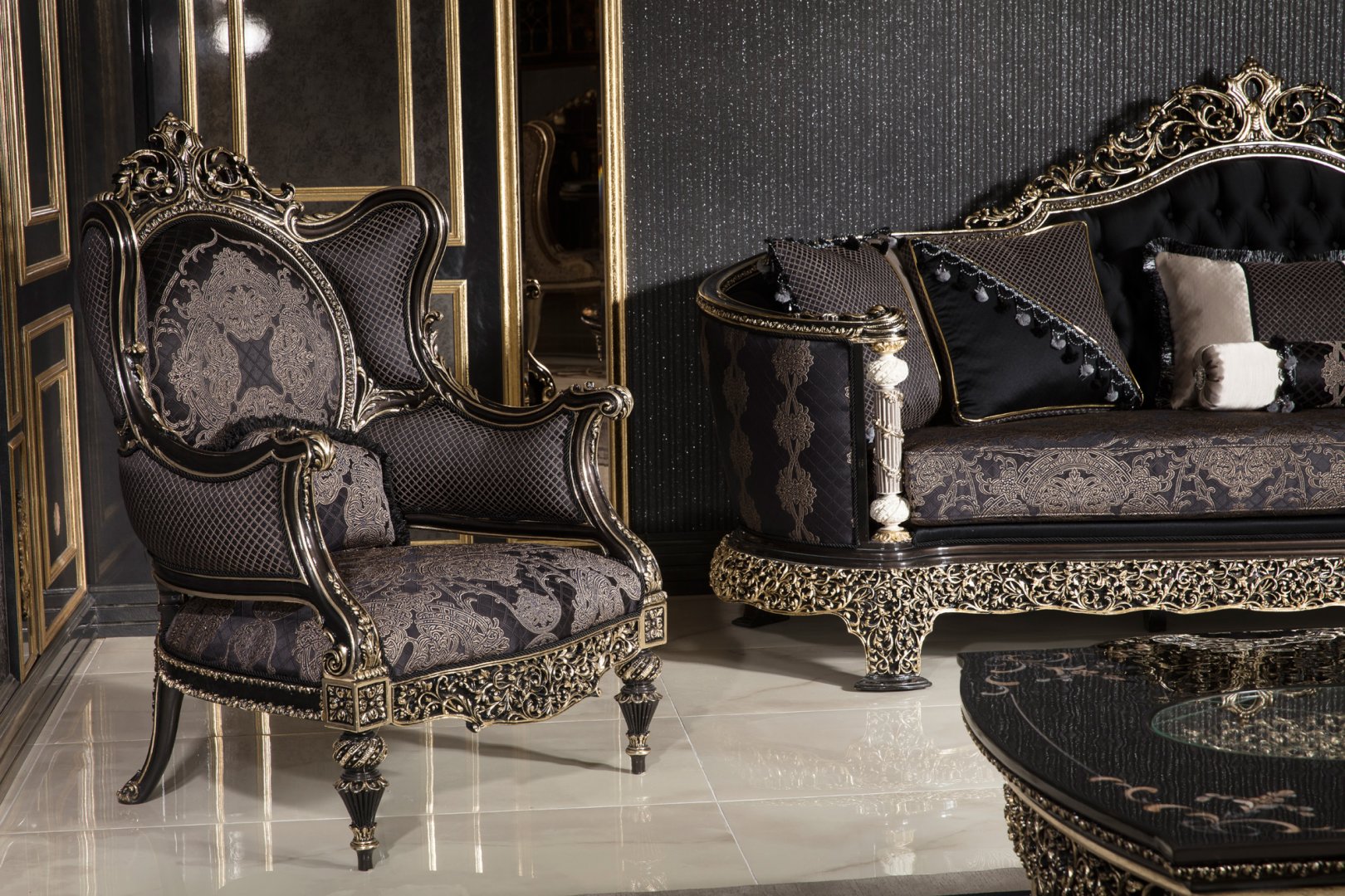 Stilinizi kalıcı stile edilmiş koltuk takımları şıklığı ve şık detayları ile dikkatleri üzerine toplayacak. Kusursuz tasarımlarını üst düzey yaşam tarzı ile birleştiren Oturma Grupları dekorasyonunuzdaki ışıldayan bir parça olacak dönüşecek. Yaşam alanlarınızda Şeref klasik koltuk takımları ile konsept imzalı özel tıslamalar