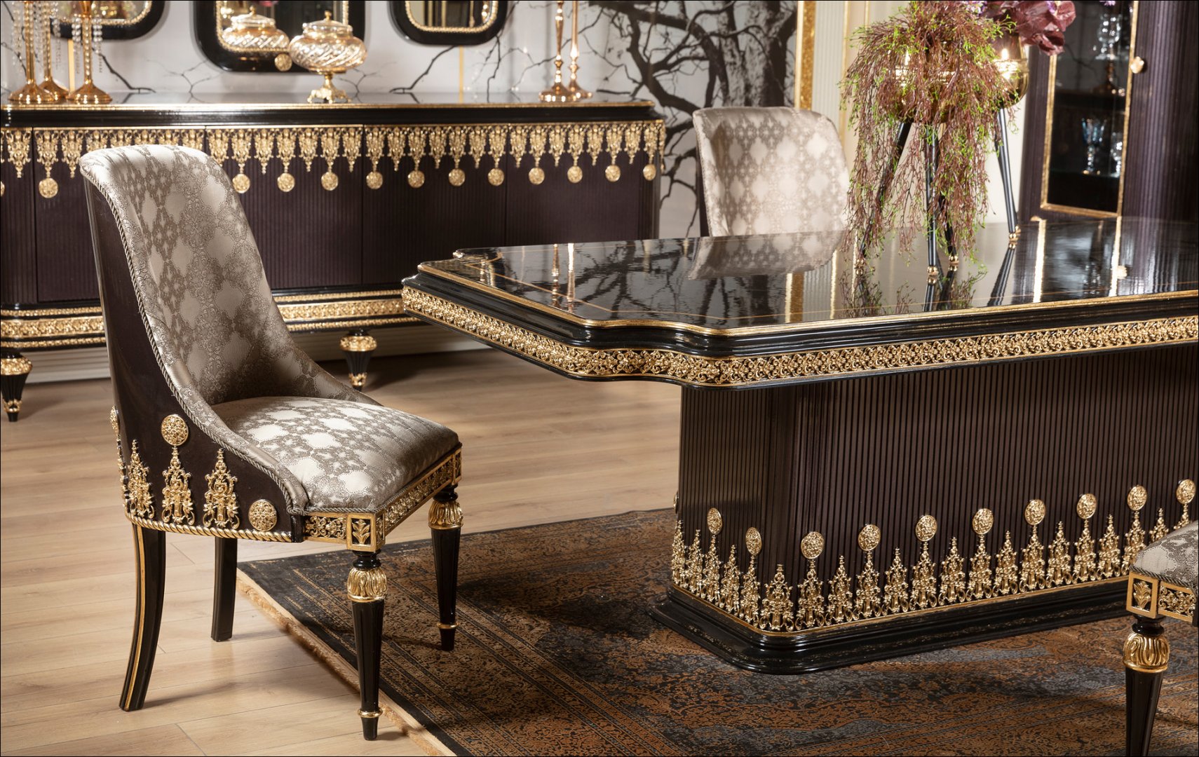 Klasik mobilyalar göz alıcı tasarımları ve muhteşem oyma motifleriyle, yaşam alanlarınıza bambaşka bir estetik görünüm getirecek. Tüm gözleri üzerine çekecek şık tasarıma sahip klasik yemek odası takımları, ergonomik yapıları, dayanıklılığı, zamansız oluşlarının yanı sıra birinci kalite doğal ahşaptan tamamen el işçiliği ile imal ediliyor. Ve yaşam alanlarınızda uzun yıllar boyunca kullanım vaadi sunuyor. Şeref Concept'in Klasik yemek odası tasarımlarını yaşam alanlarınıza dahil ederek, aradığınız luxury ve ihtişamlı görünüme kavuşabilirsiniz.